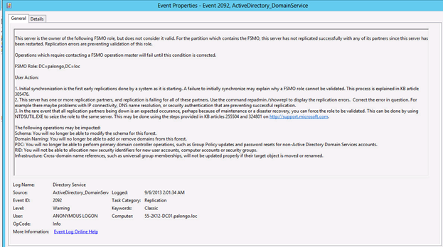 In my last post, I addressed the question of “What happens when you clone a FSMO role-holder”. This is another take on the same question of FSMO roles and how the new “Virtualized Domain Controller Safe Restore” feature in Windows Server 2012 impacts your disaster recovery plans and considerations. Please see the referenced link for a re-introduction to the new safety features introduced for virtualized Domain Controllers in Windows Server 2012.