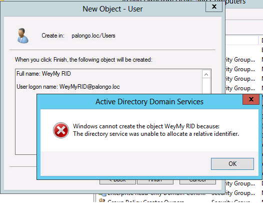 It also discards its RID pool and looks towards a RID master to give it a new batch. Unfortunately, because the RID master itself is still undergoing recovery, it is unable to supply a new RID pool to this DC. In this condition, even if this DC has completely self-healed, it will not be able to perform any operation requiring the generation/allocation of RID. The same is true if the DC in question is the RID master itself but has not been able to perform a successful inbound replication with any of its replication partners.